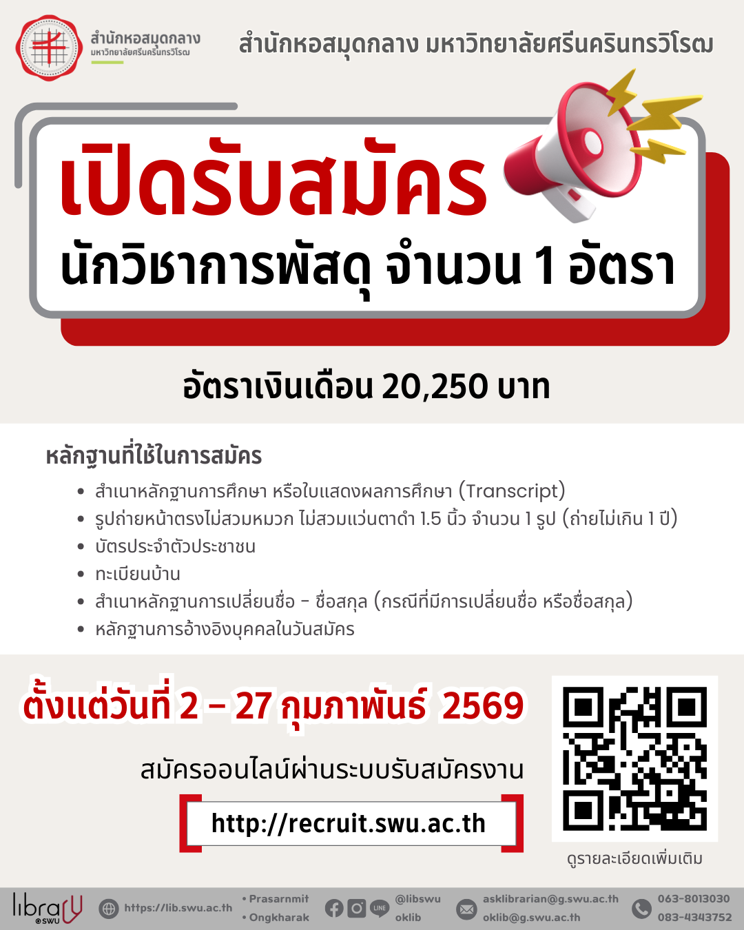 🚫 ห้องสมุดปิดบริการวันหยุดนักขัตฤกษ์ (ดูเพิ่มเติม)